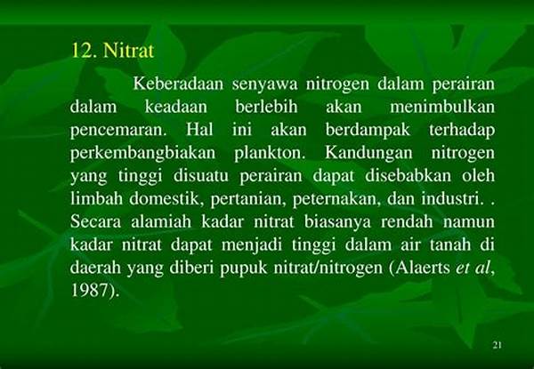 Lalu, bagaimana kita bisa terlibat aktif dalam perdebatan global ini? Jawabannya adalah edukasi berkelanjutan dan kampanye kesadaran. Dengan dukungan media sosial dan blog, isu nitrat berlebih mulai dikenal luas. Banyak aktivis lingkungan yang beralih ke platform digital untuk menyebarkan pengetahuan dan wawasan mengenai isu ini. Anda pun bisa turut serta dalam upaya ini dengan membagikan informasi dan mendorong orang lain di sekitar Anda untuk lebih bertanggung jawab terhadap lingkungan.