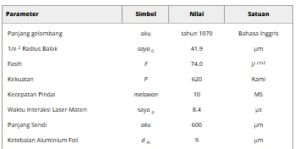 Tabel 1. Kumpulan parameter Proses LMB yang dioptimalkan.