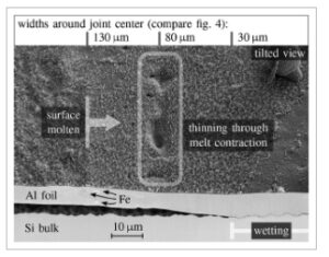 Transisi ini menandai akhir dari proses pengikatan, yang menyegel antarmuka antara Al dan SiN X. Akhirnya, aliran panas dari daerah yang kemudian diradiasi menyebabkan penonjolan foil yang mengelilingi daerah yang dibasahi. Total waktu peleburan di antarmuka adalah
