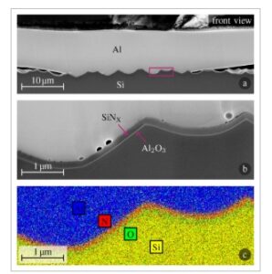 Topologi Antarmuka dan Dinamika Pembasahan Ikatan yang Diinduksi Laser Antara Aluminium Foil dan Pasivasi Silikon Nitrida dalam Sel Surya